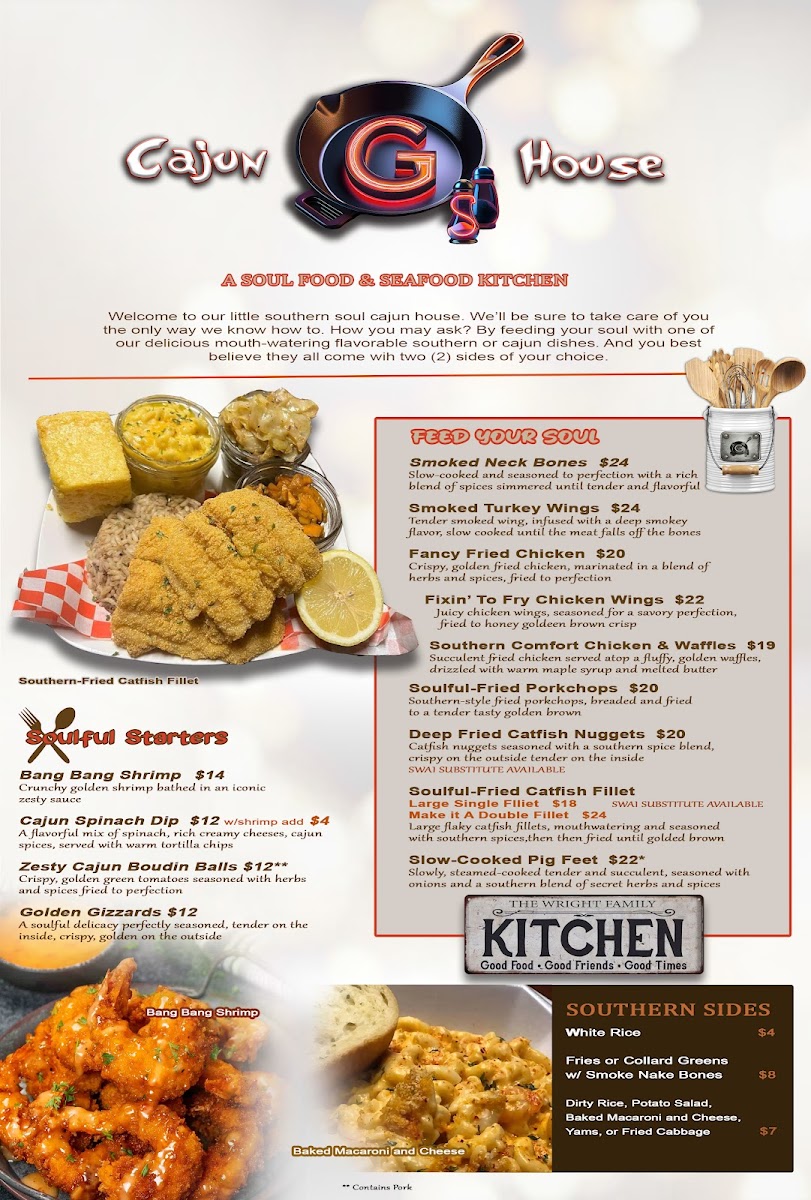 Welcome to G’S Cajun House, where the essence of home-cooked Cajun comfort meets El Paso’s vibrant dining scene. Located at 4808 Dyer St, El Paso, TX, this cozy eatery is quickly gaining a reputation for its mouth-watering menu that captures the warmth of Southern cuisine. The standout dishes include the catfish nuggets, heralded for their perfect crunch, and the heavenly chicken and waffles that redefine brunch indulgence. Diners rave about the seafood boil and bang bang shrimp, suggesting an explosion of flavor that tugs at the heartstrings of home.